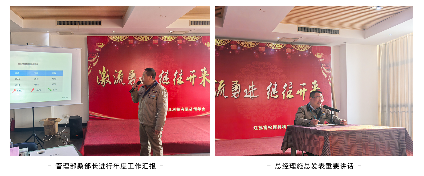 2025年1月20日,富松模具年會正式拉開帷幕,全體員工歡聚一堂,大會伊始,管理部桑部長對2024年的成績進行了匯報總結,對2024年度優秀員工進行了表彰,總經理也就過去一年的總結發表了講話。